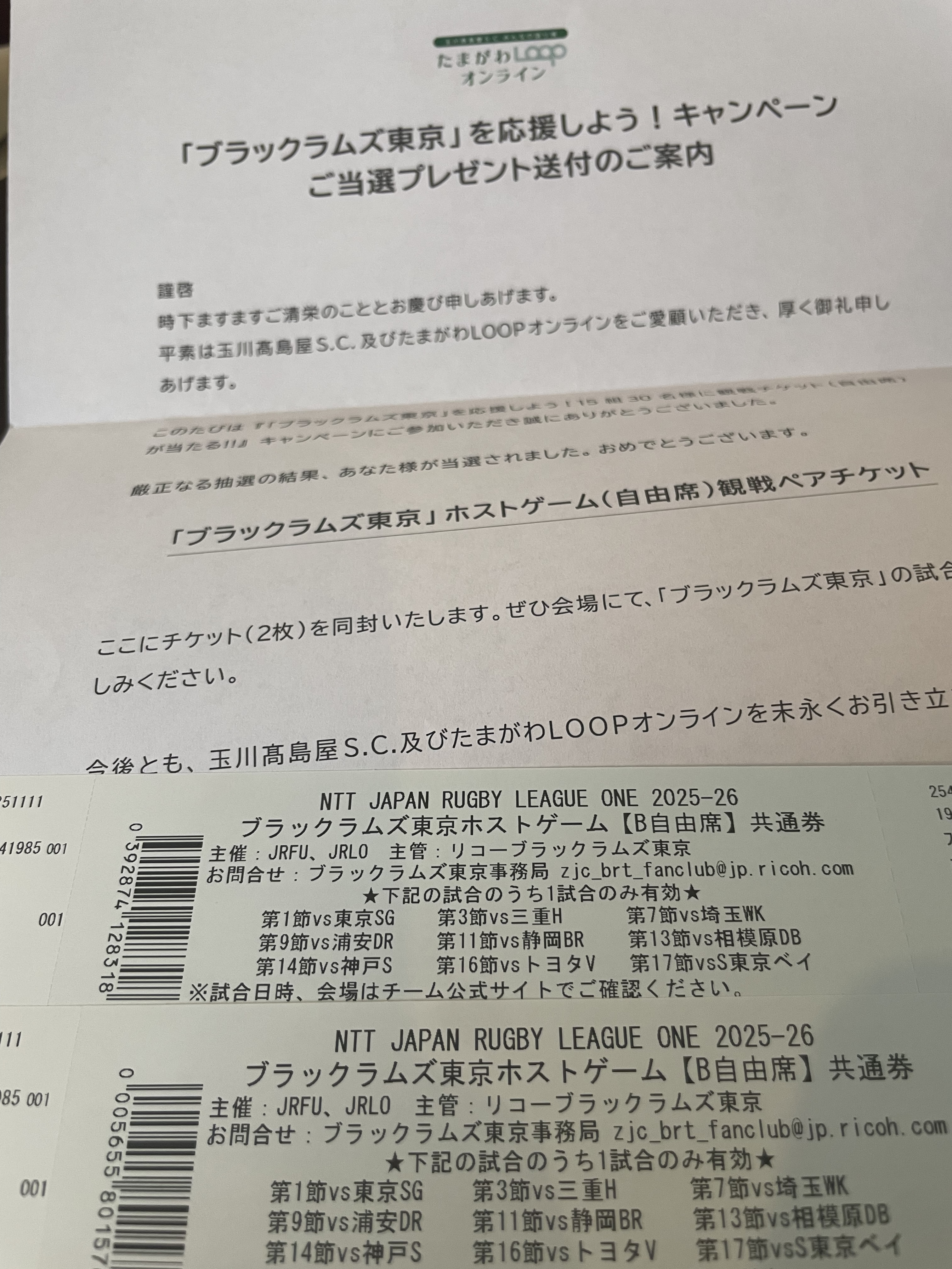 トップ > Photoシェア > 今日の1枚 > !!! めこ(megkj31) 2026/01/24 15:25 !!! 久しぶりに応募してみたラグビー観戦、、、🤲 嬉しい限りです!!! 全力で楽しみたいと思います。 いいね 共有する 共有する X facebook LINE リンクをコピー コメントする 5 件の返信 (新着順) ミュートしたユーザーの投稿です。 投稿を表示 江戸っ子ぴー 2026/01/28 11:50 ご当選おめでとうございます。 どの試合を応援するか 悩ましいですね。 冬の試合は、白熱すると、選手の体から湯気が上がると聞いたことがあります。 応援する方は、白熱しても、温まるのは、一瞬なので 寒さ対策しっかりですね。 いいね 返信する ミュートしたユーザーの投稿です。 投稿を表示 めこ(megkj31) 2026/01/29 17:20 江戸っ子ぴー 有難うございます!!! 湯気!寒いからこそ見れる景色ですね! 防寒万全で行って参ります!🫡 いいね 返信する ミュートしたユーザーの投稿です。 投稿を表示 しーちゃん ✨ 盛りあげ隊!2期生 2026/01/25 11:15 めこ様、ご当選おめでとうございます😊👏 生観戦は、きっと迫力があるでしょうね👍 楽しんできて下さい😊 いいね 返信する ミュートしたユーザーの投稿です。 投稿を表示 めこ(megkj31) 2026/01/26 20:26 しーちゃん ✨ 盛りあげ隊!2期生 有難うございます!!! 生歓声を味わって参ります🫡🧡 いいね 返信する ミュートしたユーザーの投稿です。 投稿を表示 玉高クー 2026/01/25 09:22 当選おめでとうございます 対戦相手との試合を選べるんですねー 楽しんでくださ〜い いいね 返信する ミュートしたユーザーの投稿です。 投稿を表示 めこ(megkj31) 2026/01/25 09:31 玉高クー 有難うございます! しっかり吟味して、参戦したいと思います!💪 いいね 返信する ミュートしたユーザーの投稿です。 投稿を表示 MNnikotama 2026/01/24 22:29 👏👏👏 すご〜い✨ 興奮と感動💖再び🎉ですね〜 ご当選おめでとう御座います🙏 ご無沙汰しておりますが… バタバタ続きにてLOOP拝見出来ない 時もあり…失礼しております 本年もよろしくお願い申し上げます🙏😊 いいね 返信する ミュートしたユーザーの投稿です。 投稿を表示 めこ(megkj31) 2026/01/25 09:31 MNnikotama MNnikotama様〜! 有難うございます! 私も久しくLOOPに遊びに来れておらず、、、 こちらこそ本年もどうぞ宜しくお願いいたします☺️ いいね 返信する ミュートしたユーザーの投稿です。 投稿を表示 Law 2026/01/24 15:52 『ブラックラムズ東京』🏈🏉 ラグビーチケット✨ 御当選おめでとうございます。 最近ticket🎫はスマホ申込みで抽選 デジタル化されsystemに慣れつつ analogue紙媒体を目にすること 珍しく貴重ですね。 然も書留郵便で届けられ 喜び一入でしょう…。 羨ましい限りです😊 お久しぶりです💚💕 御元気でしたか~…😊 温かくして試合お楽しみに…。 いいね 返信する ミュートしたユーザーの投稿です。 投稿を表示 めこ(megkj31) 2026/01/25 09:30 Law 応募していたことは覚えていたのですが、23日を過ぎたので、外れちゃったかなあ〜なんて思っていた矢先に!!! 有難うございます☺️✨ いいね 返信する