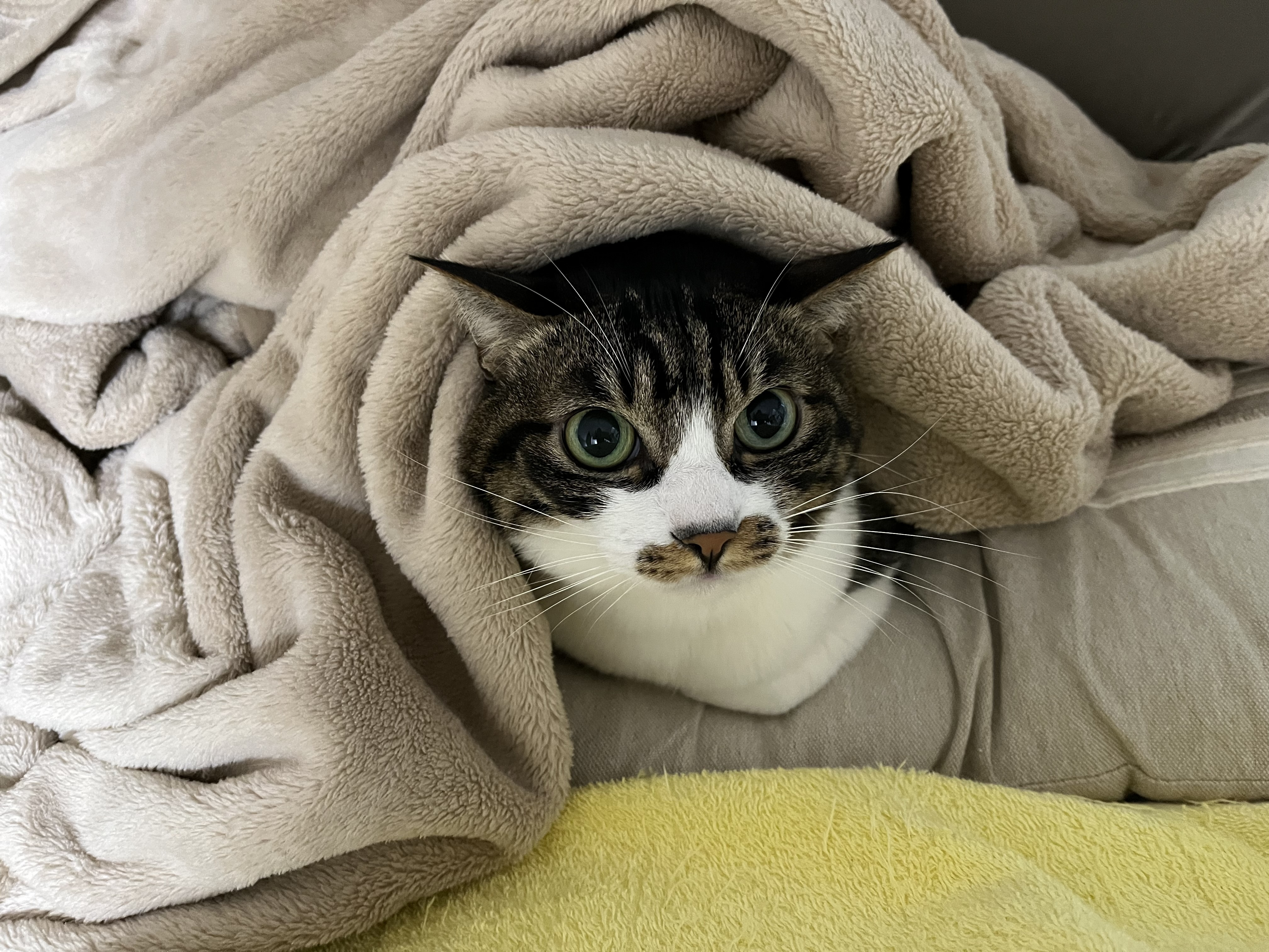 アンちゃんと同じく毛布にくるまってテレビを見てました📺