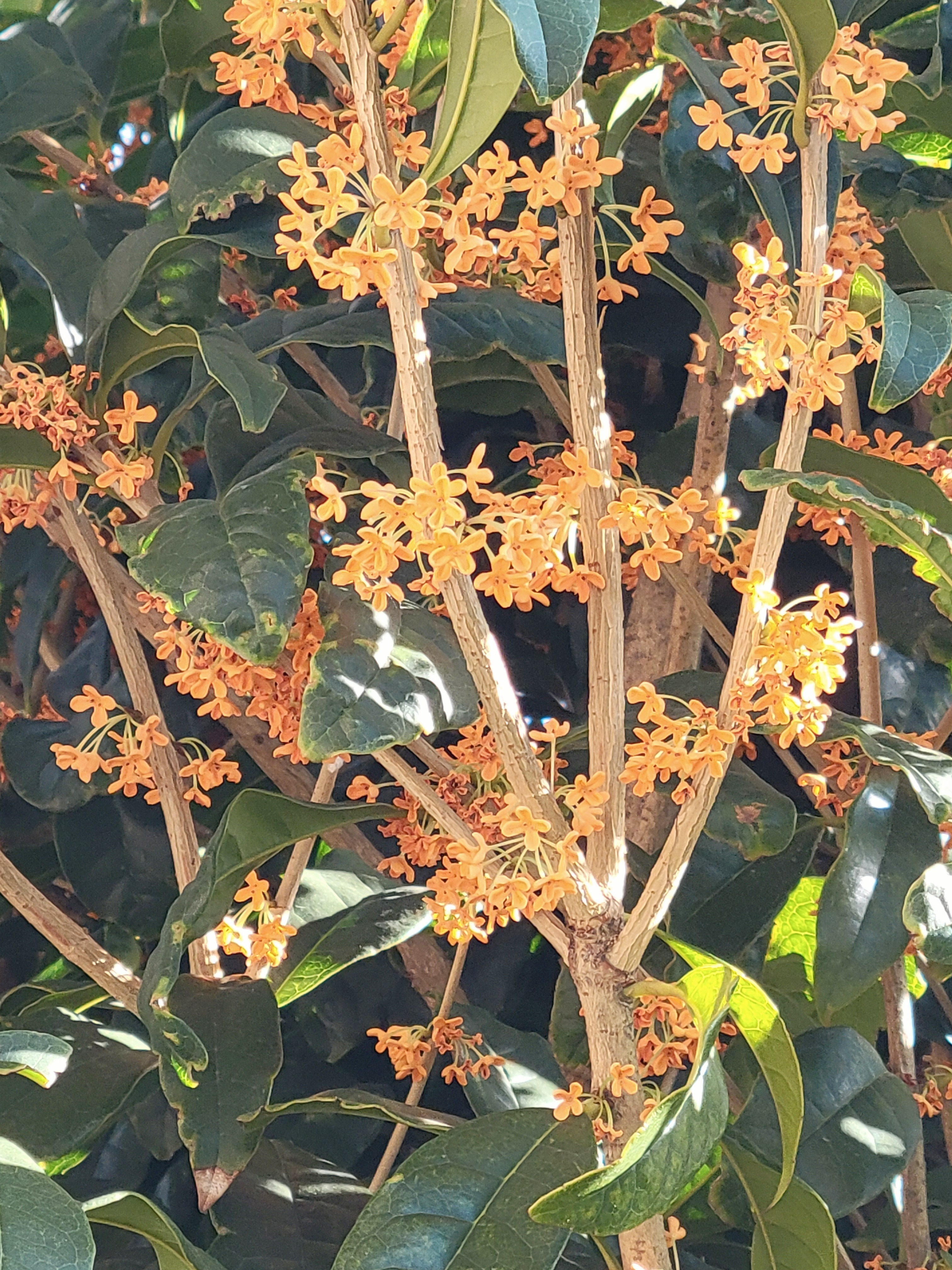 うちにあるキンモクセイは前回の強風で散ってしまったので、とても嬉しくみせていただきました。香りがたまりませんね。次は蝋梅の香りかな?