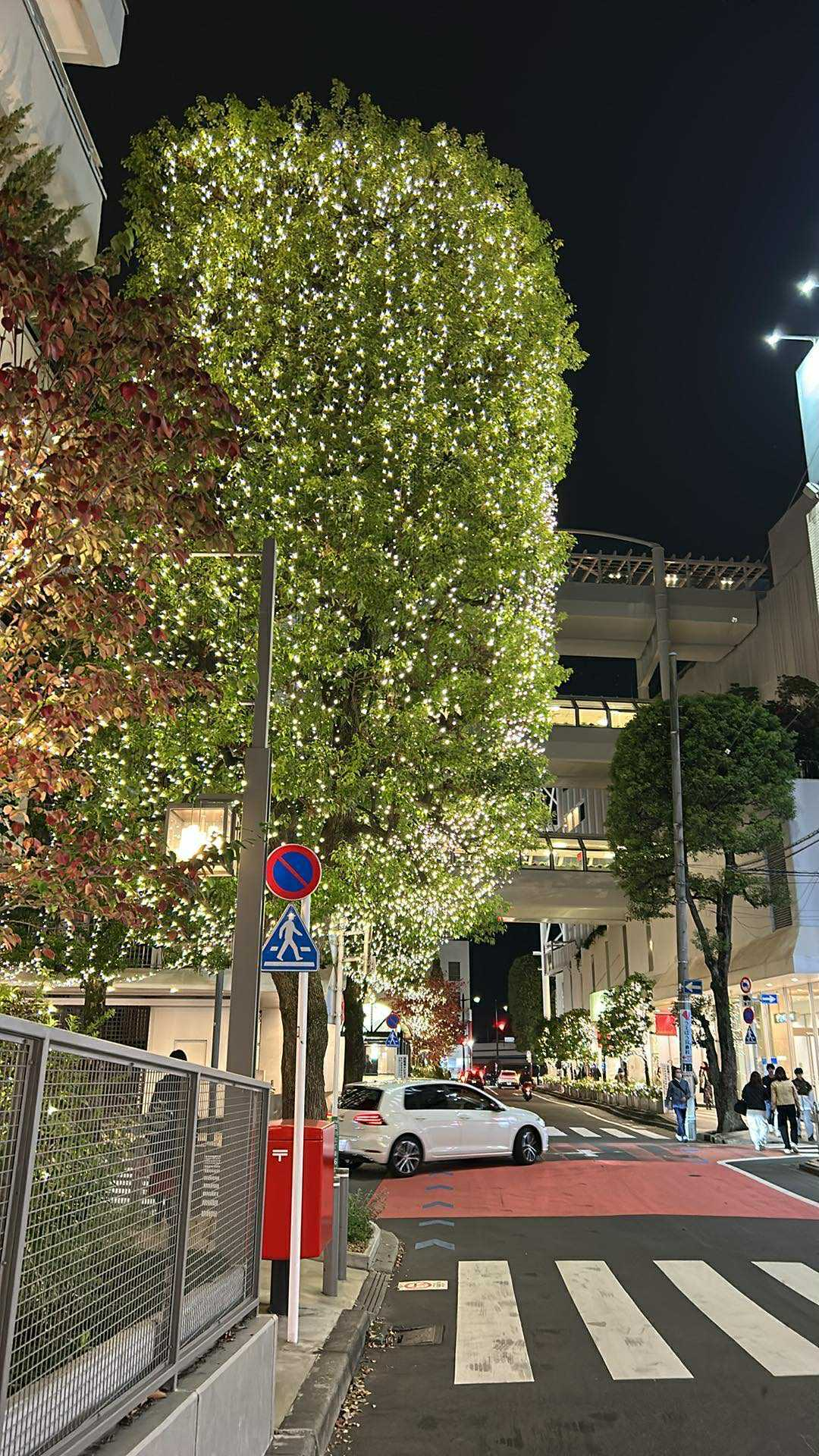 私もこの連絡通路を背景に両側に光る木々が並ぶ景色、好きです😊💕