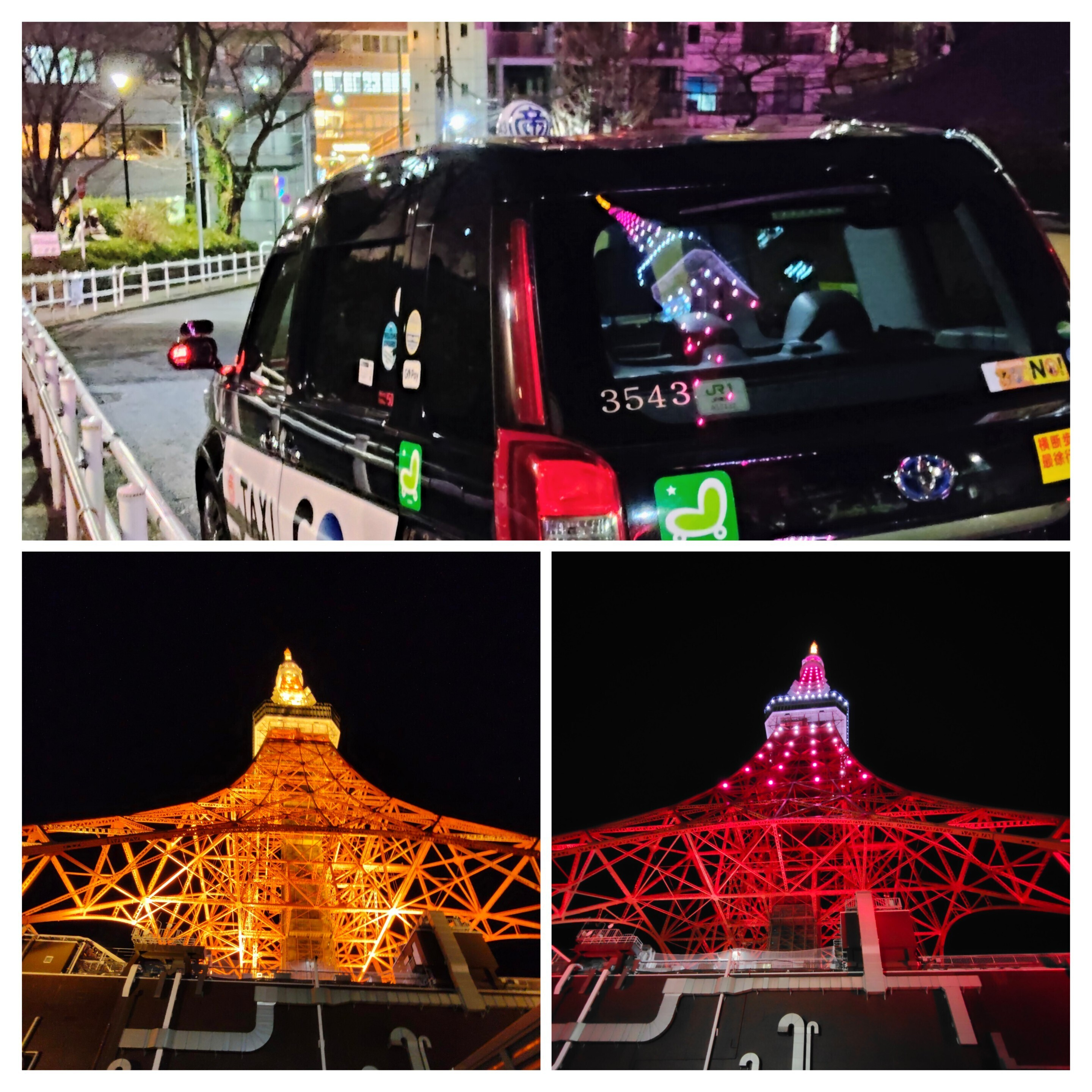 私は、観光バスやタクシーの窓に映っているタワーのライトアップを見るのも好き😍で、つい写しちゃいます😉