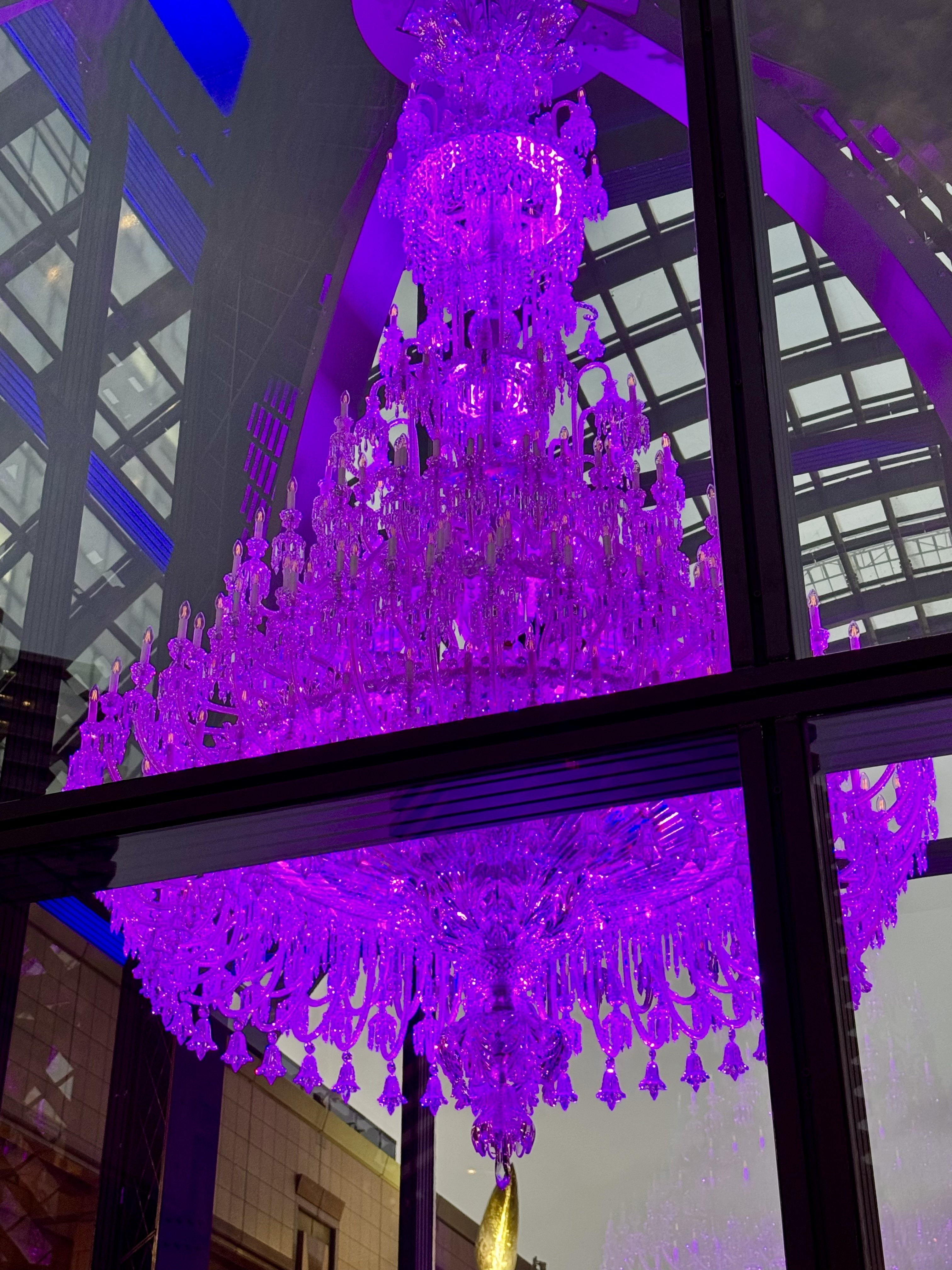 高さ約5m、幅約3m、クリスタルパーツ総数8,500ピース、ライト総数250灯の世界最大級のシャンデリアが灯す輝きが街を華やかに包み込みます。昨日、11月8日(土)17時からは点灯式が開催されました。
