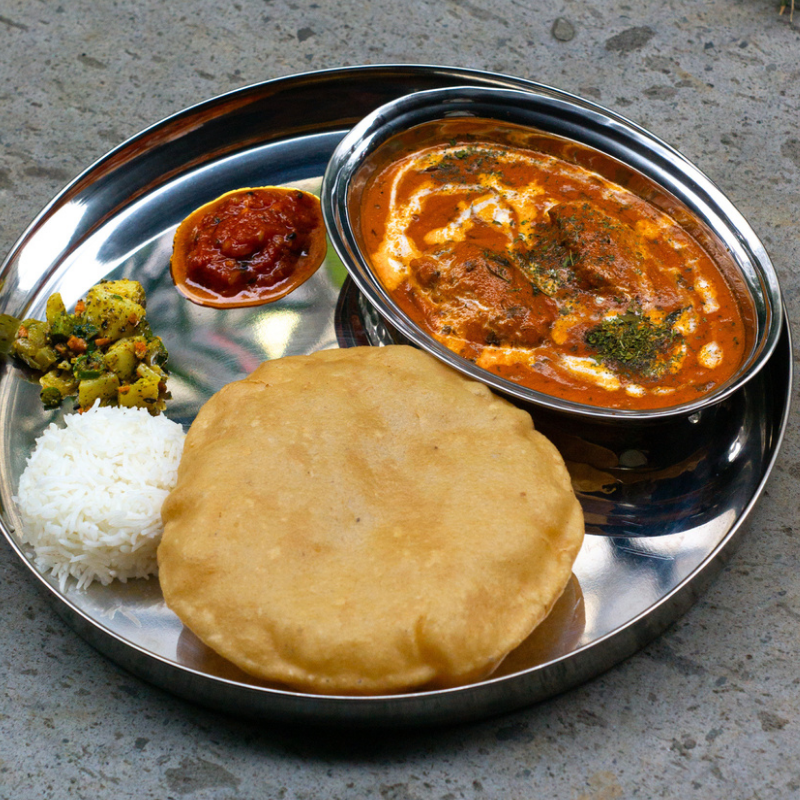 ●南アジア、バトゥーラ、揚げパン、軽い食べごこち。バターチキンカレーはおいしいです。