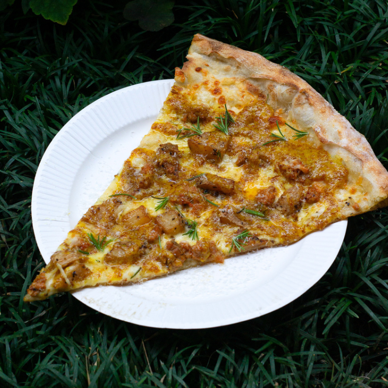 ●スパイスのきいた、マスタードのきいた、初めての味のピザです。
