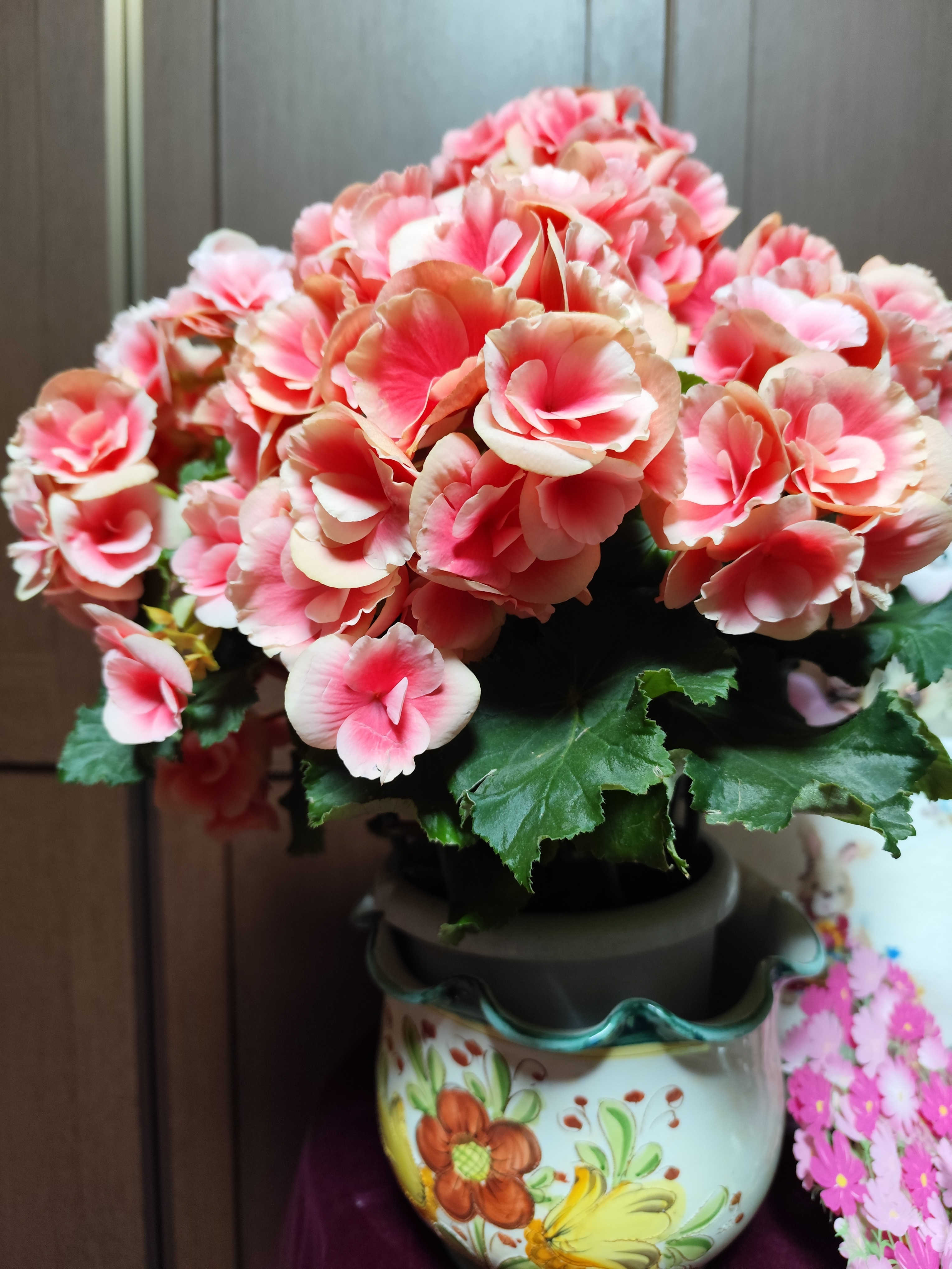 花びらの先の淡いホワイトがピンクへと変化していくグラデーションが可愛いピンクのベゴニア。