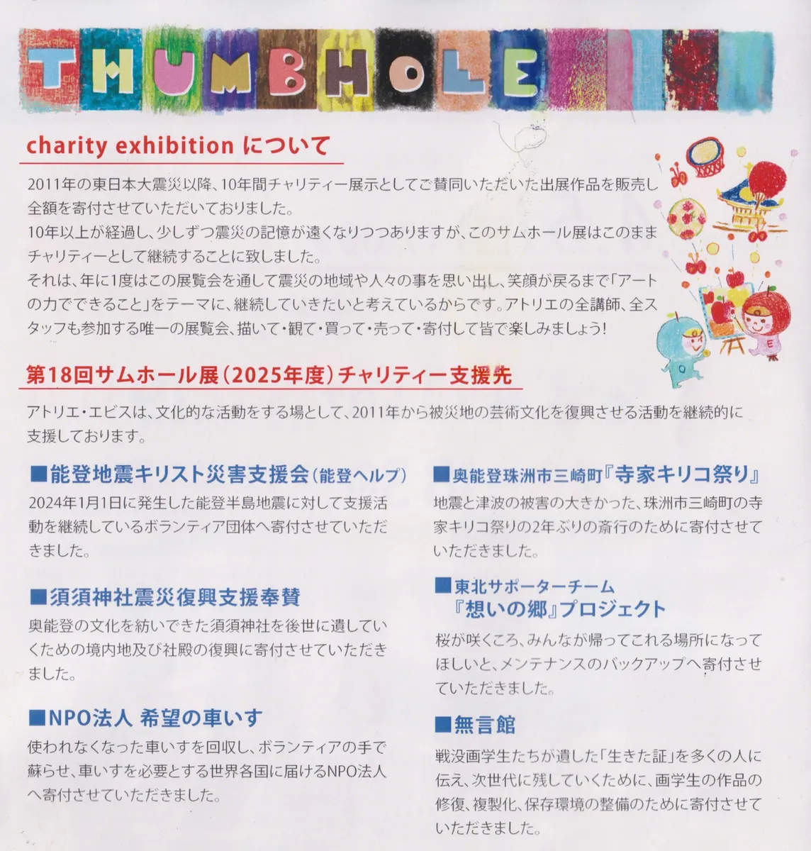 来月、恒例のチャリティー展覧会第19回「サムホール展」が開催されます。