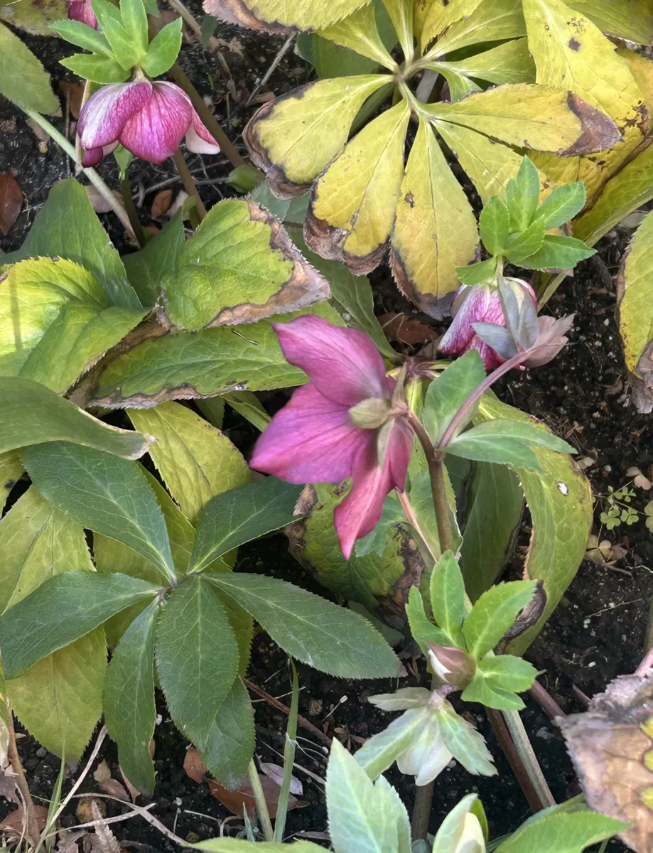 ローズガーデンのクリスマスローズ🌹、冬のお花が少ない時期に元気に咲いてますね🎀