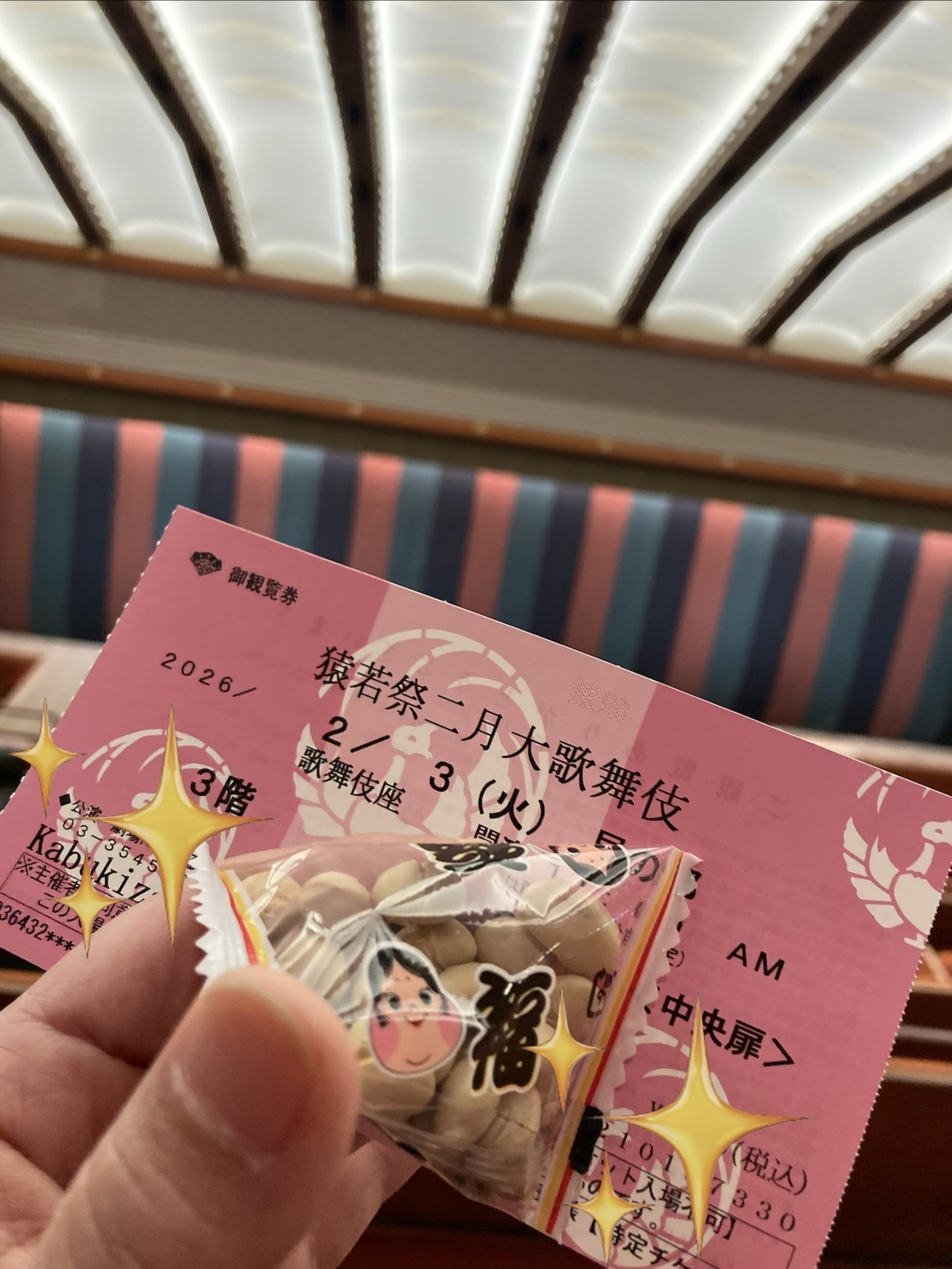 今日は節分。毎年節分には歌舞伎座で追儺式(豆蒔き)が行われます。今年も行ってきましたとも♪
