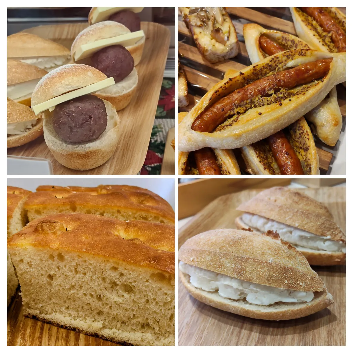 今回のパンは、よつ葉バターと粒あんのビジュが可愛い「あんバター」、粒マスタードとスパイスの効いた「ウインナー」、低GI値のスペルト小麦使用「スペルトフォカッチャ」、豆乳バターと練乳で作ったクリームたっぷり「ソイミルクフランス」。