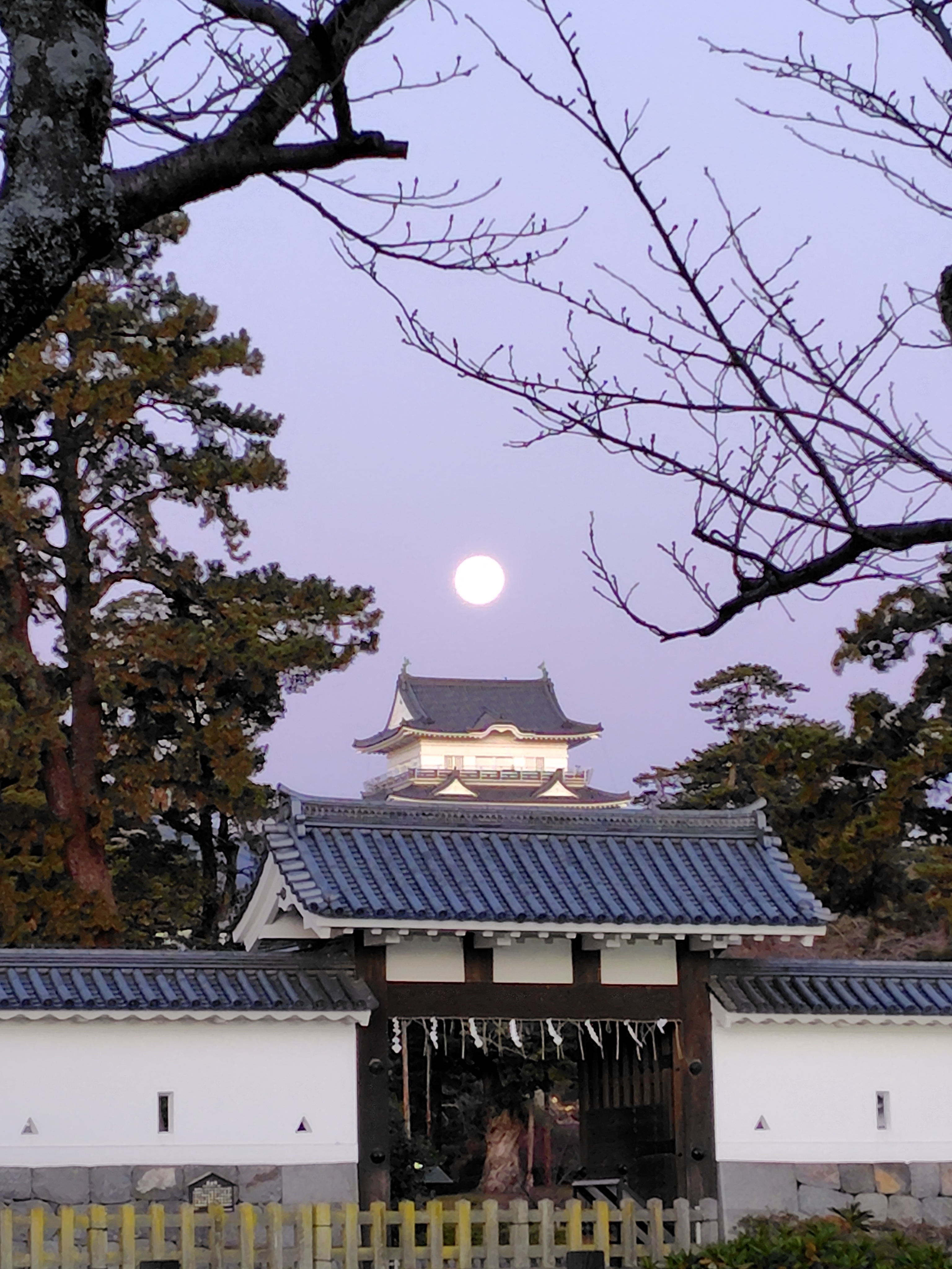 投稿を表示ちょっと珍しいアングルの小田原城と素晴らしい満月🌕