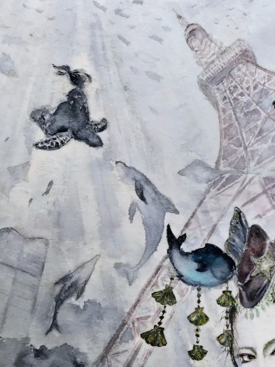 今回は、異常気象で水没した世界で、◯◯太郎と◯姫が再会する…というシーンを描きました。