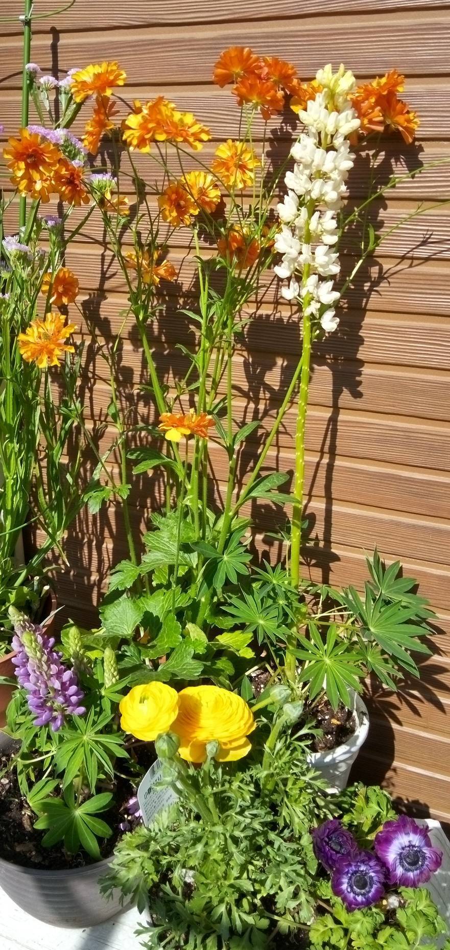 寄せ植えにしようかと考えていたのですが、考えていた以上に高低差があるので、今回は、それぞれ別の鉢で育てることに決定です。