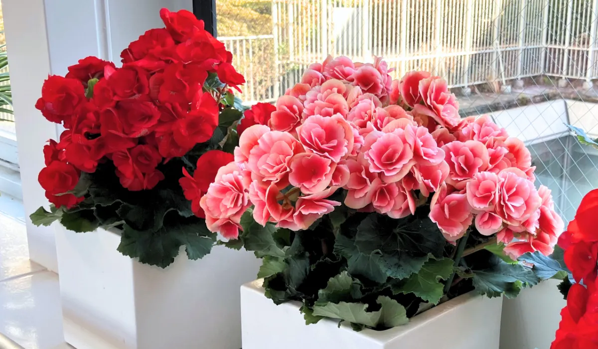 真っ赤なベゴニア、ピンクのベゴニアどちらも素敵ですね。