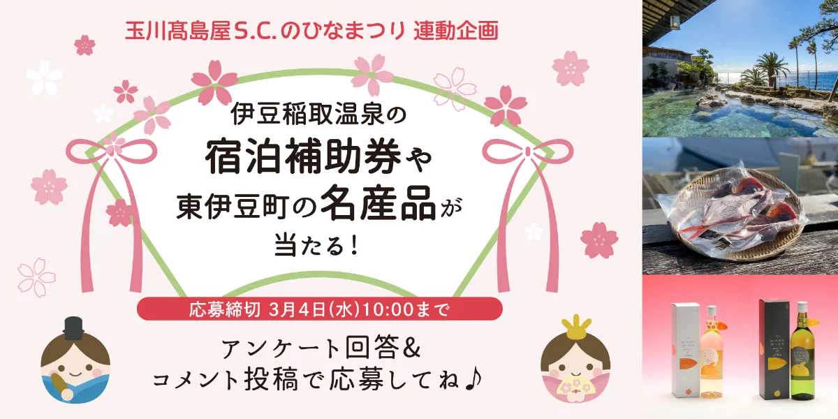 《玉川高島屋S.C.のひなまつり 連動企画》アンケート回答&コメント投稿をしてプレゼントを当てよう!