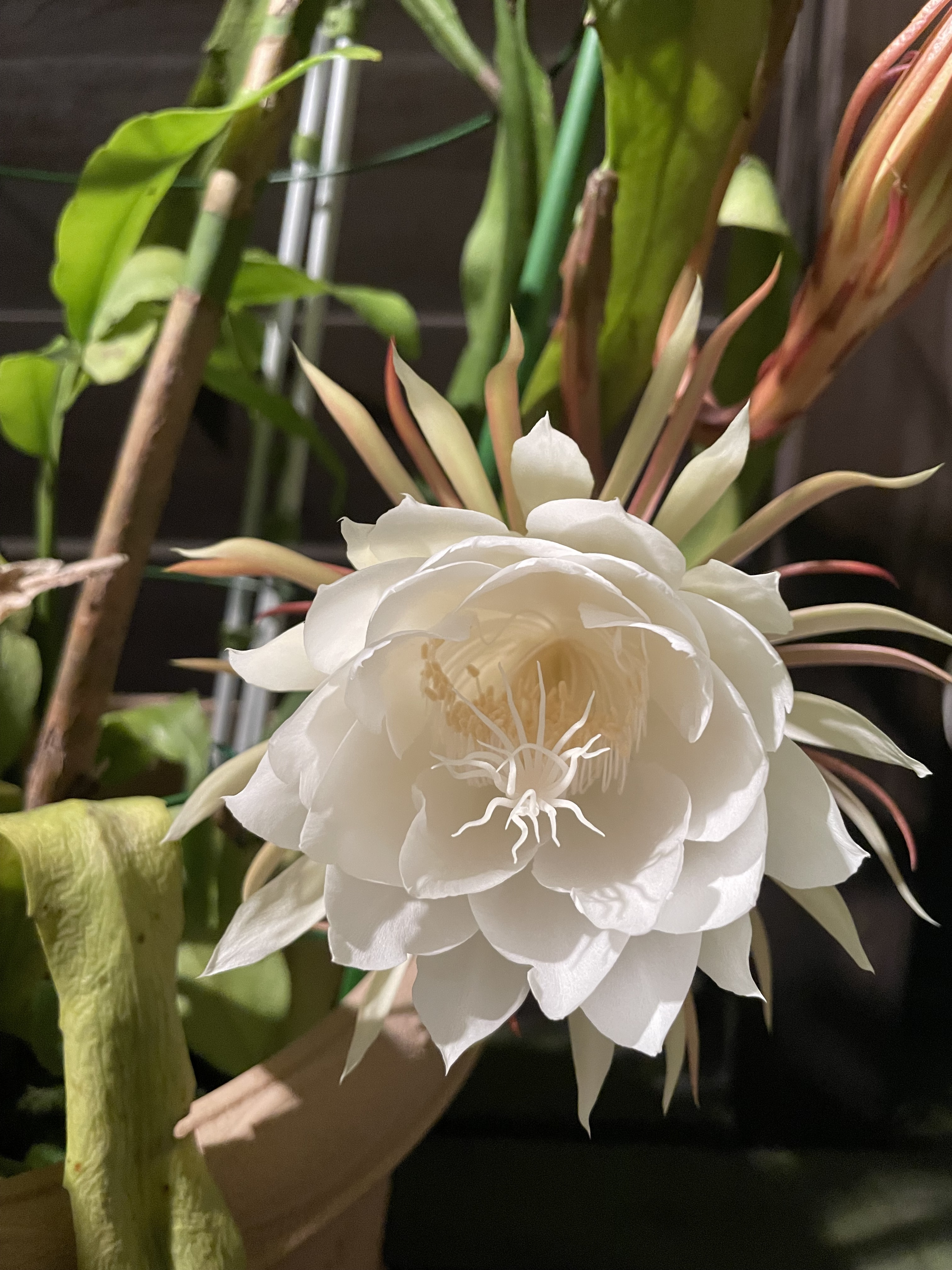 トップ > Photoシェア > 今日の1枚 > 真夜中の月下美人 玉高クー 2025/09/30 16:43 真夜中の月下美人 ひと夜限りの花、真夜中のあまーい芳香。何の為に、誰の為に咲くのやら、不思議な花だなあ… いいね 共有する 共有する X facebook LINE リンクをコピー コメントする 2 件の返信 (新着順) ミュートしたユーザーの投稿です。 投稿を表示 MNnikotama 2025/10/07 11:52 不思議ですよね〜 たった一晩に美しさを最大に輝かせ👏👏👏 見事です✨🙏 『月下美人』💖ピッタリのお名前✨ いいね 返信する ミュートしたユーザーの投稿です。 投稿を表示 Law 2025/10/01 06:05 麗しの月下美人… 儚い美しさ 歴史を辿ると高貴な花 こちらのPhotoで お目にかかれる喜び ありがとう存じます。 未だ かおりは嗅ぐことなく 貴重な花です~…。 いいね 返信する ミュートしたユーザーの投稿です。 投稿を表示 玉高クー 2025/10/01 08:15 Law おっしゃる通り“儚い“ですねー 花は咲けども実はならず 匂いに誘われて寄ってくる虫等もなく ただ暗い中でひっそりと咲く しかし派手で豪華な花 一夜限りと言わずもっと長く、多くの方々に観てもらえればいいのになあ… いいね 返信する