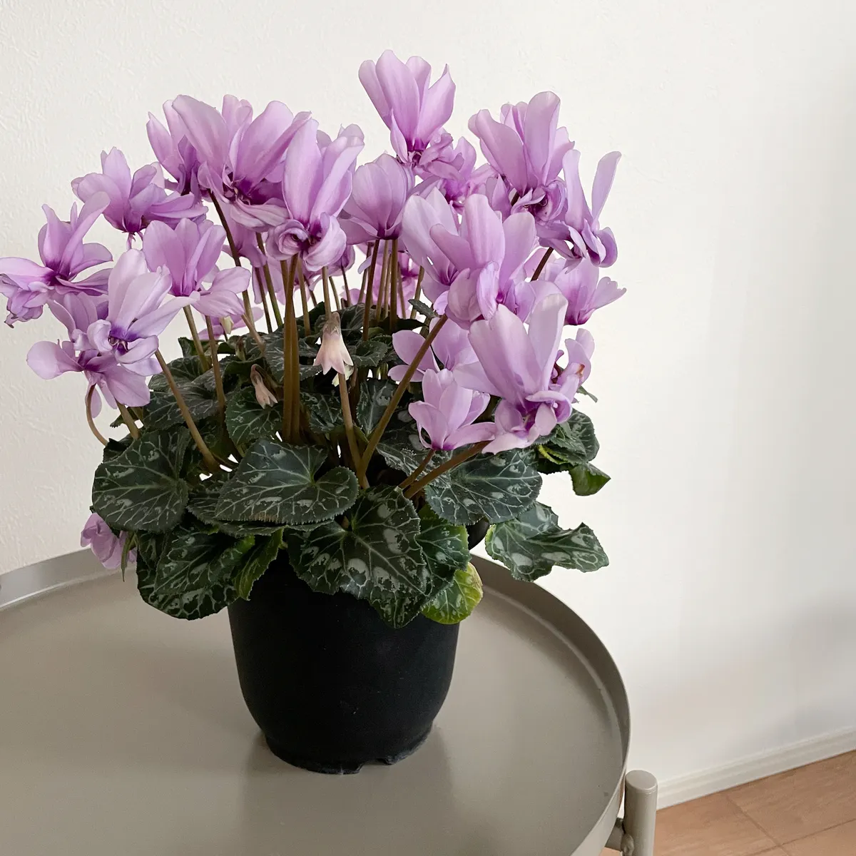 上品で柔らかく、そして優しい色合いが印象的なパープルのシクラメン。