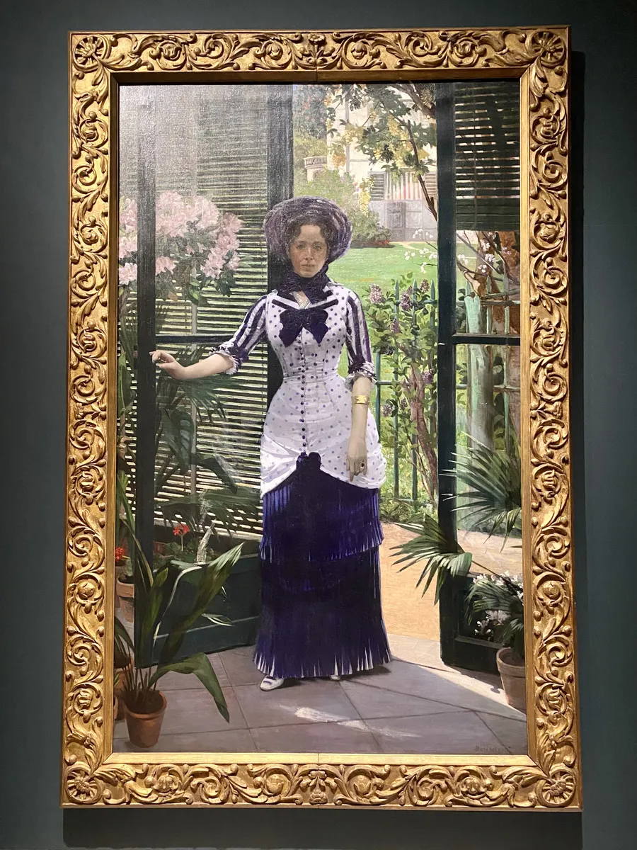 アルベール・バルトロメの「温室の中で」です。画家の妻が温室に足を踏み入れる姿を描いた作品です。