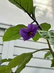 茄子の花 庭で育てた茄子。夏の間に10本程収穫出来ました。切ろうと思ったら蕾がいくつか。切るタイミングの逃してしまいました💦気温が低くなってきたので実までには成長しないかなぁと思っていますが…暫く見守ろうと思います🍆♪🍆♪