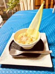 夏の終わりはモロコシアイスで 台風🌀に一喜一憂な毎日ですが、夏休み終盤で色々〆ているご家庭も多いことでしょう。 今日は届いた超フレッシュコーン🌽でアイスクリームを作りました。輪切りにスライスしたコーンはバターで焦げ目を少しつけて醤油で仕上げて様し、アイスクリームと並行して冷やした甘じょっぱいチップスです。食べた後は可愛