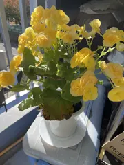 黄色いベゴニア 先週お迎えして1週間。葉っぱが茶色くなってごめんね💦今日は日光浴をしました。写真の撮り方がヘタすぎますが、これからも愛情をもって育ててまいります。