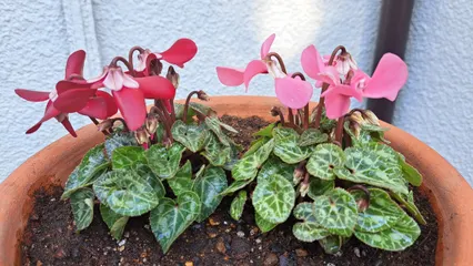 シクラメン“ジックス”♥️🩷 今シーズン初、我が家にお招きしたガーデンシクラメンです。最近良く見かけるようになったシクラメン“ジックス”という名前のシクラメン。華やかな色合いですが恥ずかしそうに下を向いていて可愛らしい様子です☺️ポンポンマムとスプーンマムも元気いっぱい🤗みんな背が高くなりすぎてしまったので来年はほどほどのサイズ