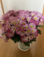 NEW こんにちは。 フラワーバトンのご当選、おめでとうございます🎉 そしてマムのバトンをお繋ぎいただきありがとうございます。 今回のマムの品種は、クルンとした花弁の先が風車のように見えるので【風車菊】とも言われています。 もし、たくさんのお花で頭が重くなって茎が折れてしまった時、その部分は切り花としても