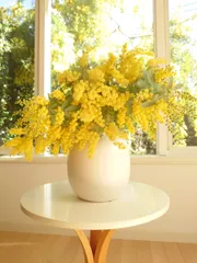 素敵💓ですね👏🤗🙏 オシャレなテーブルの上の素敵な花瓶に 溢れんばかりの素晴らしいミモザ✨✨ ♬ル〜ルル・ルルル🎶と聴こえてくる TV番組のステキなお部屋💓みたい✨ 窓のお外にも👏✨たくさんのミモザ✨💕 ご投稿💛有難うございます🙏