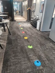 フフ、メニューの中に、冒頭画像のように設置された印の間を、リズミカルに歩く(走る?)というのがあったのですが… んもう、私の様子は、ぎこちなさ過ぎて「欽ちゃん歩き(走り)」に🤣🤣🤣 (ご存知の方いらっしゃるかしら🤪) だから ちっとも、出来てなんかいませんよ~ なので 理想の杖をイメージして、鍛練