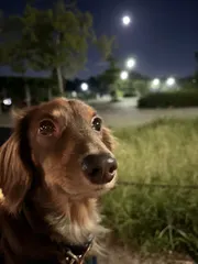 お月見犬 〜野外カフェで満月を眺めながら〜来世は人間に生まれてくるよう願ってるのかな?