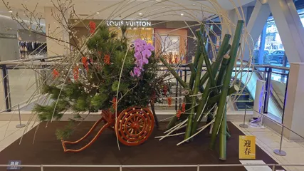 おせち料理も尽きてきたので、食材を求めて地下に潜入なり〜🛍️🫡沢山の方々が来ておられました😀PAULではパンを求めて行列でした🥖🥐我が家ももちろん買いました。子供達も嬉しそうにパパママと一緒に居ました🎵 とても平和な空気が流れていました。本館入り口の草月のお花をパチリ📸その前で三世代家族で記念撮影さ