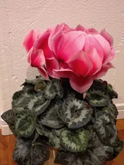 素敵なpink色シクラメン✨💝 御当選おめでとう存じます。 シュク様✨仰る通りに 緑鮮やかな葉の大きさと 同じ位 それ以上の花びら纏い 迷われた御様子が目に浮かびます。 これから楽しみ歓び続きますネ…。