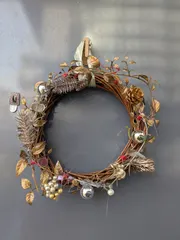 クリスマスリース(玄関ドア用)喪中なのでリースを飾らないでいたら訪ねてきた友人から、ドアに何もかかっていないのが違和感だったらしく、今年は飾らないの?と問われ思案、、、そっか捉え方でリースは永遠を意味するキリスト教のシンボルだから不謹慎ではないかも?ど思い、即効にグルーでペタペタ作ること10分(笑)