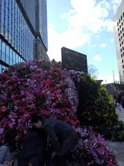 本物の花かと思えば造花 日比谷ミッドタウンで撮りました。ディズニーの映画のウィキッド ふたりの魔女宣伝。