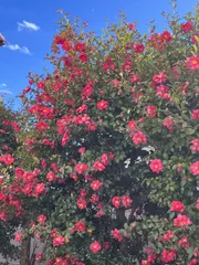 澄んだ青空に赤色の椿が 沢山のお花を付けましたね🌼 日頃のお手入れに 彼らは応えてくれたのでしょう✨💕🎵 こちらも元気頂きました😁🦾 こもも