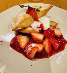アフタヌーンティーカフェに久しぶりに伺いました🩷土日はいつも行列でなかなか入店できないのですが…やっと~🩷苺と塩キャラメルのスコーンショートケーキと紅茶☕美味しかった😋💕