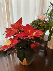 ポインセチア 初めての当選❣️迎えに行って来ました。大きさにびっくり!黄色と迷いましたが斑点入りの赤にしました。ステキな年末となりました🙌