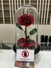 ガラス鐘で守られた一輪の赤いバラに思う