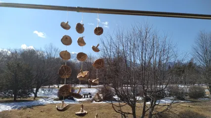 ツルヤで信州産の生椎茸🍄を購入し、滞在中に干し椎茸作りを楽しんでおります。☀️✌️干し椎茸の右側の木🌲今は休眠中の菩提樹です🍂