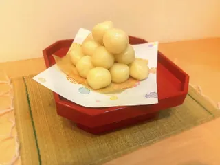 お月見の🎑お団子にも 地域色があるのですね… 日本中全て一緒かしら…と思って いました🙇♀️🙏 鏡餅… 温暖化の現在… 1/11の鏡開きまでお餅をお下げせず そのままの状態では…カビがひどく この頃はずっとパックのものに してしまっています💦😅 三角に積んである珍しいお団子ですね🙏