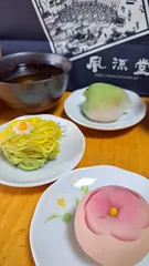 私も!味百選へ行ってきました! 今日久しぶりにタマタカヘ行ってきました🚃 本館6階に行ったら早速美味しい香り🎶味百選が開催中で沢山のお店が出店していました。目移りしながら私は美しい練りきりに目が留まり買って帰りました❣️ 島根県松江市の風流堂さんの練りきり。手前から梅ほのか、雪中花、初音。子どもたちと上品なお菓
