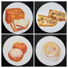 蒲田のパン屋さん「ディッシュ ベーカリー ポノ」のイラスト第2弾は、国産小麦の角食、4種のきのこ🍄🟫のタルティーヌ、シュガー(白ザラメ)とWクリーム(カスタード&ホイップ)のマラサダ、皮はパリッ!中はもっちりのリュスティック。マラサダは、揚げドーナツみたいな見た目だけれど、パンと同様、発酵