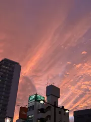 日没の空 数日前ですが…二子玉川駅の改札口を出て、高島屋方面に歩くと、多くの方が空を見上げているのでつられて見上げると…何とも幻想的な空