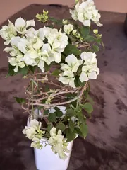 昨年いただいたブーゲンビリアが秋口から室内に取り込んだ後次々と苞をつけ咲き始めました!ただ日照が足りないせいか、白いお花(苞)になってしまいました🥲調べてみると白い苞になってしまった場合いくら日に当てても色は変わらないとのこと。悔しいけれど、今回は白いブーゲンビリアを楽しみつつ、また暖かくなってきた