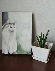 イルカラブさんがご投稿された写真を拝借して、取り組んでいた水彩画が先週完成しました!このニャンコちゃんは、渋谷の猫カフェに在籍の「ロイン」という名のノルウェージャンフォレストキャットの女の子。窓の外をアンニュイともメランコリックとも言えそうな表情で眺めている姿に、モーレツに魅了されて😻…その雰囲気を