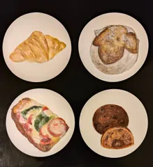 パンのイラスト 長女の友人が、昨年4月に蒲田にオープンしたパン屋さん「ディッシュ ベーカリー ポノ」。パンのメニューチラシを作ろうということになり、私がイラストを引き受けて…きゃっ、責任重大😆まずは、こだわりの「クロワッサン🥐」、ローストしてからハチミツ🍯に漬け込んだクルミを入れたリュスティック「ハニーウォルナッツ
