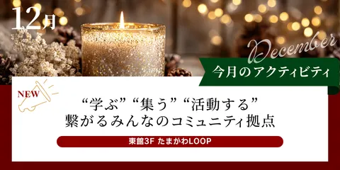 【たまがわLOOP】アクティビティのご紹介! 12月の 「たまがわLOOP」 アクティビティをご紹介!気になるタイトルや時間等を押下👆いただくと、概要をご確認いただけます♪※「たまがわLOOP」 WEBサイトへ遷移します。◆12月 December3日(水) 自由に楽しく“書を嗜む” 4日(木) Christmas